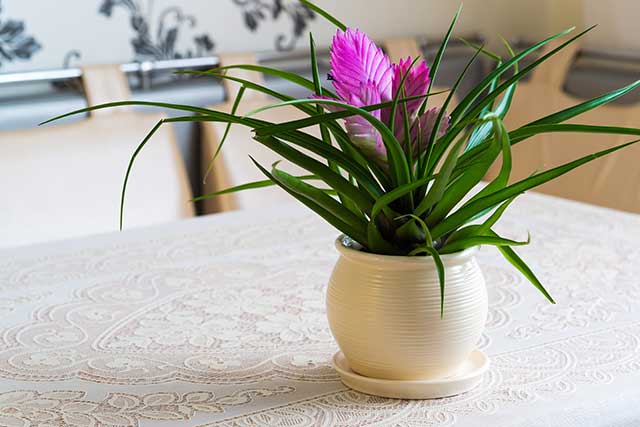 - Tillandsia: These are perfect if you prefer plants with more foliage interest. Tillandsia features bold colorful flowers. They like bright indirect sunlight and are considered air plants.