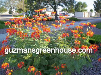 Yes, it grows in Las Cruces and surrounding areas. But it takes exceptional care to make it survive the cold winters. It loves the hot southwestern heat. Plant it in the blazing hot sun or in rock gardens. It does well with reflected heat from walls, rocks, or cement. Cut it back when it goes into dormancy, somewhere around early November. Cover the plant with mulch or large stones to keep the root warm during the cold seasons. Also called Pride or Barbados, Peacock flower. Other Bird of Paradise Plants.