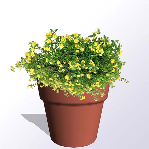 Yellow spreading Lantana will do great in pots, and they both love the full hot southwestern sun.