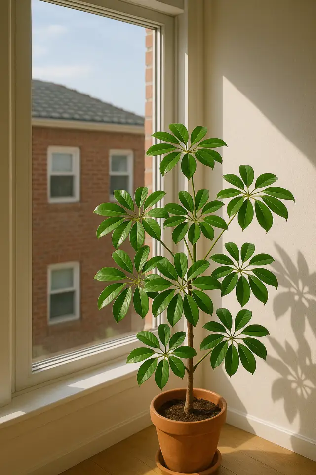 This plant’s signature feature is its dazzling foliage. Each stalk fans out into several smaller leaves that point outward, resembling the spokes of an umbrella. Healthy Schefflera plants have vibrant, green leaves without brown tips or yellowing. If you ever wondered how to tell if your plant is thriving, just look at its leaves—they say it all.