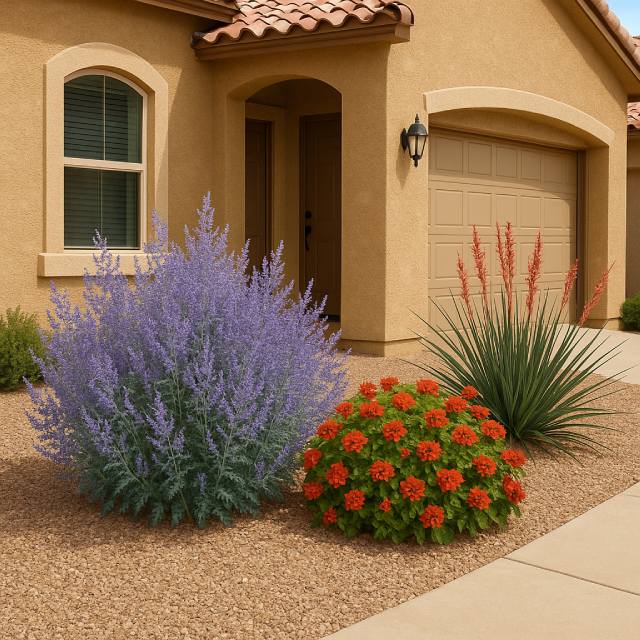 Pair Russian Sage with other low-water, desert-adapted plants such as Lantana, Red Yucca, or Desert Marigold for a colorful and sustainable landscape design. Whether used as a border plant, accent, or mass planting, Russian Sage adds texture and long-lasting color to your yard. Share your gardening success on social media or try growing it in different parts of your garden to discover how it enhances your Southwest curb appeal year-round.