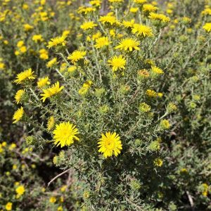 - A gray-green shrub produces clusters of small yellow flowers in spring.