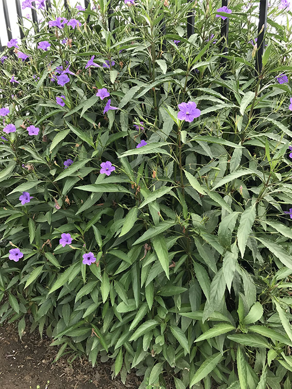 The Mexican Petunia Plant (Ruellia brittoniana) is sometimes called British Ruellia, mexican bluebell. It is a fast-growing, easy-care perennial for Southwest landscaping. It comes back year after year without any problem. Propagating is a breeze, just snip off a stem, place it in water and soil, and it will grow!