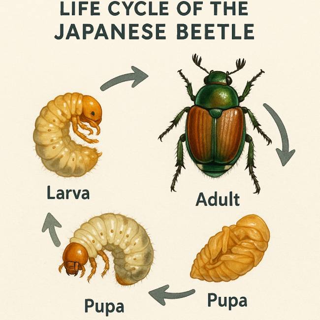 The adult beetle is also a pest that will eat the foliage of Oak trees, boxwoods, and roses. It is best to spray with a good insecticide to kill these flying insects. If you want to go organic use a Japanese beetle trap available at most nurseries or greenhouses in the U.S. So, if you kill or trap beetles there will be less chance of an infestation of larvae on your lawn.