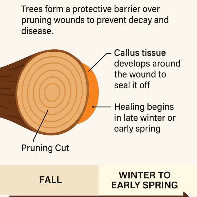 This natural healing process depends on warmth, moisture, and active growth — conditions that are minimal in late fall. That’s why late winter to early spring is the best time to prune.