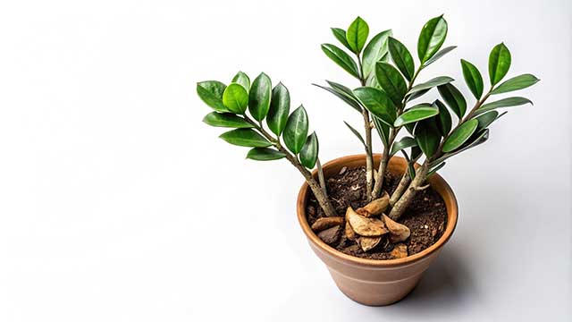 The ZZ Plant isn’t too demanding when it comes to feeding. During the growing months, feed it with a balanced liquid fertilizer diluted to half strength about once every four to six weeks. Skip fertilizing entirely in fall and winter, as the plant’s growth slows down. Avoid over-fertilizing, as this can cause a buildup of salts in the soil. You can dilute your fertilizer to about 1/2 the recommended ratio.